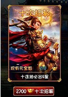 从价格看来十连抽比普通抽卡便宜一点,十连抽运气的成分比较高,虽然必出四星英雄,但是出什么就不一定了啊。运气好的玩家朋友可能出个五星英雄而一下强力起来,也有可能抽到不好的四星英雄白白浪费元宝。