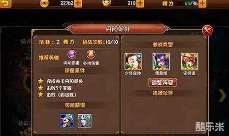 1.进入副本前,游戏界面会显示副本适合的英雄种类,分为外功英雄和内功英雄两种。