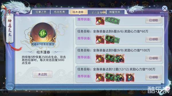 全身装备的星星数量达到相对应的要求既可领取丰厚的战纹精华奖励,所有目标完成后即可获得回血神技能【枯木逢春:每5s回一次血,攻击玩家,每次攻击都会回血】