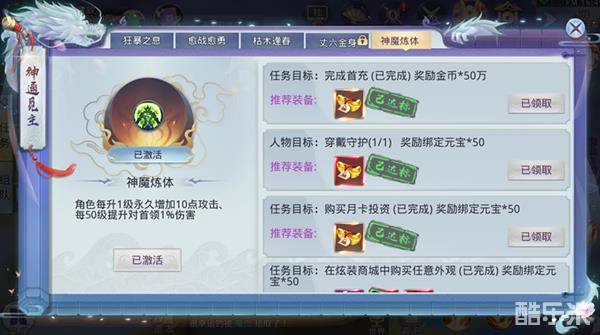 咳咳,神通觅主的最后一个被动技能【神魔炼体】,听着名字就知道很厉害啦!虽然实际上确实也挺厉害,角色每升1级永久增加10点攻击、每50%提升对首领1%伤害,拥有此神技,纵横世界首领,竞技场,各种大战,统统都不是梦了!