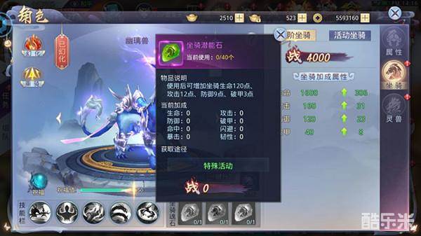 仙友们可以使用坐骑成长丹与坐骑进阶丹升阶坐骑。