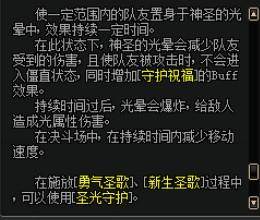 命中敌方可为全队增加10s的勇气祝福和守护祝福持续时间。(适用减抗效果)
