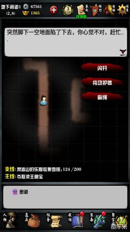 挖出地洞后进去即可,进入地洞后靠左下角往上走,碰到毒镖选择闪避,不然会受轻伤