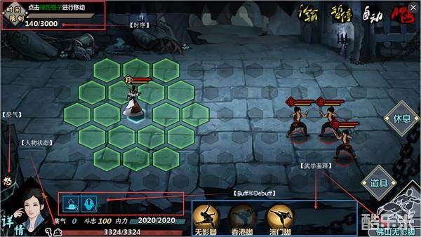 内力 人物的内力值,内力不足时角色无法使用大部分技能。每次休息随机恢复少量内力。