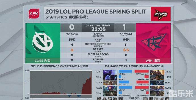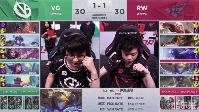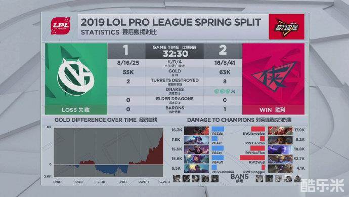 最终,RW下路推进开团,将VG团灭在高地,首局先下一城!