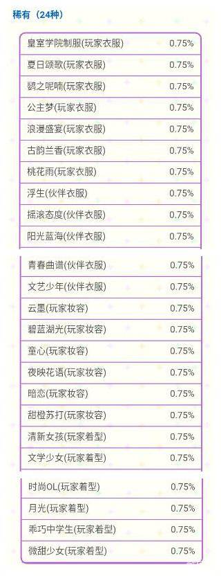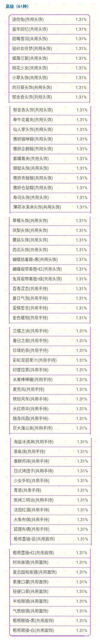 ※各稀有度道具中奖几率
