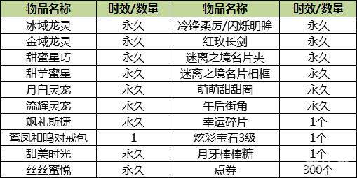 新款座驾甜蜜星巧、甜芋蜜星甜蜜你的早春,还有非卖翅膀月白灵宠、流辉灵宠,非卖光效飒礼斯捷,新款鸾凤和鸣对戒包,以及甜美沁心组合套装,新款脸型冷锋柔厉/闪烁明眸等其它热门道具!