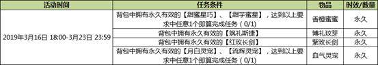 2019年3月16日 18:00-3月23日 23:59,获得本期珍宝八音中的指定物品,即可领取奖励物品!