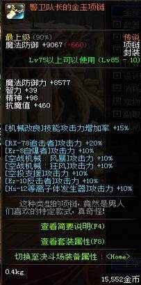 而有机械改良白金徽章的小伙伴们需要准备2个,分别将它们打在裂魂魔法石和辅助装备上,从而可以穿上两件绿气装备,并可以佩戴上机械师特有装备警备队长的金玉项链。