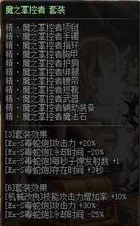 魔之掌控者异界套对于之前的机械玩家可能有点陌生,在这之前这套六件属性中是没有机械改良技能攻击力增加率+10%这一说法的,自上次角色平衡后这套套装也有些少许改动,使机械师这个职业不单单是纯绿皮职业了。