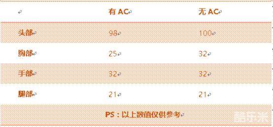 根据上述信息,我们可以看出:目标未配置AC,被M249-S命中头部瞬间秒杀、胸部和手部4枪、腿部5枪;反之,若目标配有AC,那么头部需补枪、其他保持不变。