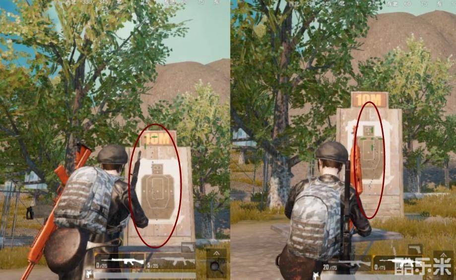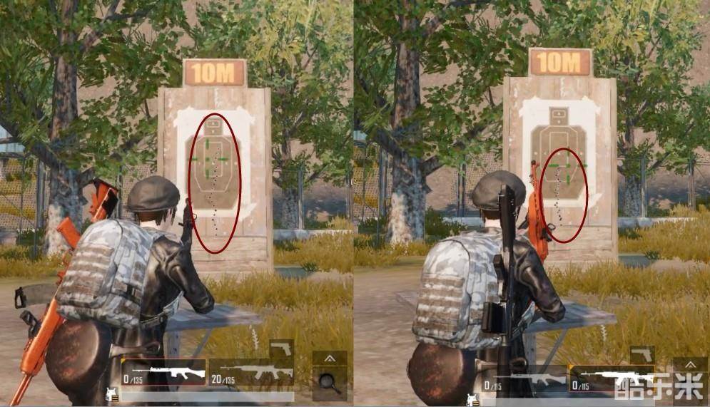 在枪械满配和高倍瞄镜下,两把枪械在着弹点表现。我们可以看出,得益于轻型握把的加持,SKS连续射击时视野的晃动和准星的恢复要明显优于SLR,着弹点分布也较为密集,玩家能拥有更高的命中率,这一点在实战中尤为重要。