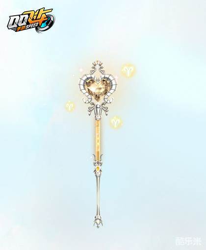 巨大的金色水晶被打磨成心形,镶嵌在金萌白羊手杖的顶端,周围有代表着白羊座的羊角守护,构成美好的图案。金色是热情高贵的颜色,象征着白羊座直率热情的性格,与金子般高贵纯洁的品质。