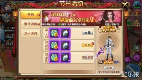 为了给广大考生应援,《紫青双剑》官方趣炫网络特在游戏内设置了天天签到送好礼的活动。玩家可在节日活动期间登陆游戏,在游戏主界面找到节日活动按钮,进入到签到界面同时点击签到即可领取当日奖励。同时,连续签到3天的玩家更是可以额外获得“金榜题名”绝版称号奖励!为众学子添油助威!