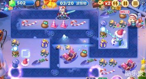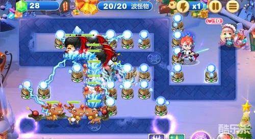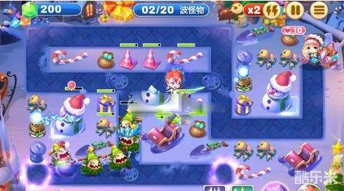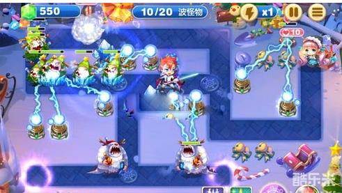 这一关的任务是保护小女孩抵挡20波怪物。这一关有两个出怪口,怪物主要还是从左边的出口出来。右边出口会出现大怪物,血量超级厚。所示首先先建造三个炮塔。然后让最左边的雷光攻击大雪人,剩下的炮塔就用来攻击怪物吧。