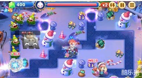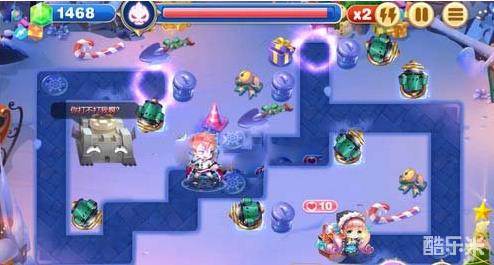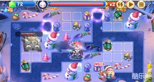 首先让左边的棱镜攻击大雪人,这样可以清除两个糖棒。然后让右边的棱镜也攻击大雪人,这样又可以清理一个糖棒。接下来优先在右边建造棱镜,因为从第三波怪开始就会从右边出怪了,如果不放心可以让英雄待在右边。
