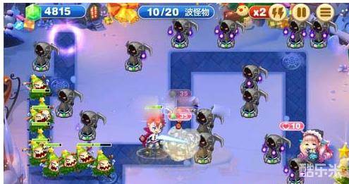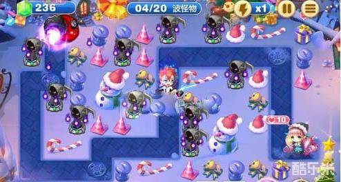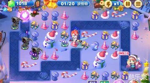 这一关的主要任务就是保护小女孩抵挡20波怪物。而且隐藏炮塔的数量帮你较多所以不是很难。如图所示建造一个死神。让它攻击附近的两个礼物盒。