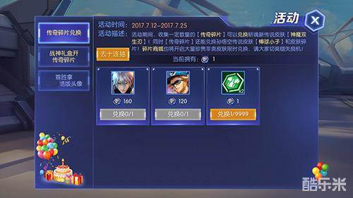 而在《王者召唤》当中,召唤师们可以通过参与暑假狂欢盛典之中的十连抽等活动获取“传奇碎片”这一道具,只要集齐120枚,便能够兑换到“棒球小子·孙悟空”这一传说皮肤。