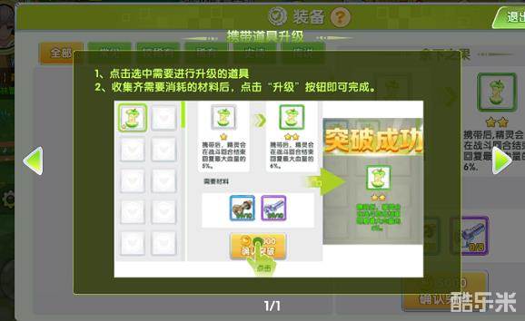 在贝克梦世界中,每个精灵的实力都不一样,而精灵们的实力,除了日常的培养来提高外,还可以通过佩戴装备或树果等道具来增加精灵的实力,与树果使用一次就会消耗掉不同的是,装备可以持续使用,而且还能进行突破来提升装备能力,下面由小编来为你介绍吧!