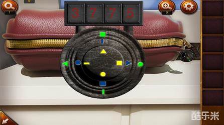 点击包包的锁,按照标记提示转动圆盘,输入密码3775,开锁进入包包。