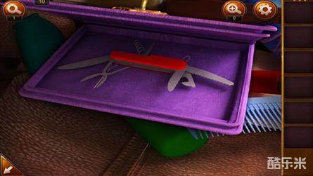 单击军刀,点击剪刀,剪开绳子,点击发现出口,逃脱。