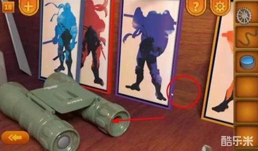首先点击右下角,获得忍者镖,然后利用忍者镖获得线。然后移动到望远镜处。用忍者镖弄望远镜镜头,然后移动忍者卡片。获得齿轮!