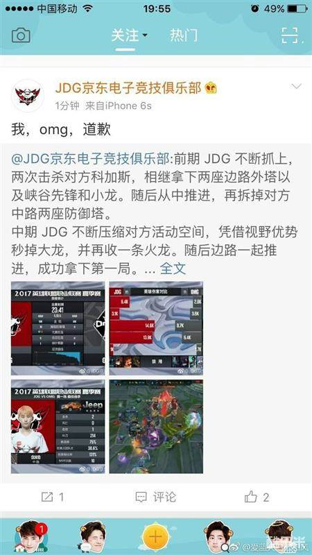 在之前的JDG vs OMG第一场比赛结束后,JDG官博发出了这样一条极具挑衅的微博。