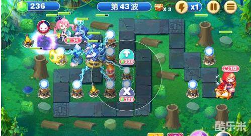 1:图中只有两个位置,靠近出怪口建立一个雷电(记得升级),打雷电右边的草丛(如果你第四炮塔走运你可以建立一个冰晶石),如果失误?没关系,可以在小红帽左上角建立一个雷电塔!(没有失误的玩家就把钱留着,但雷电一定要满级)