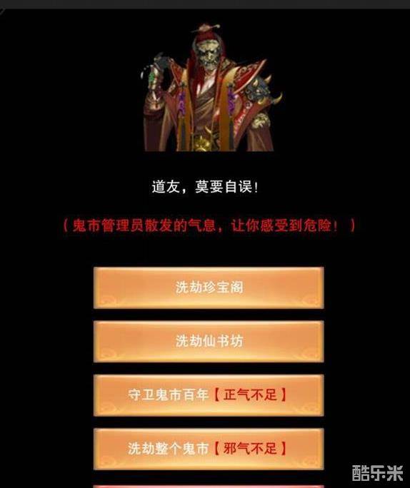 当玩家达到洞虚之后,如果声望足够就可以去洗劫鬼市,洗劫鬼市分为洗劫珍宝阁、洗劫仙书坊、守卫鬼市百年、洗劫整个鬼市,洗劫鬼市珍宝阁和仙书坊每层所需的声望都不一样,第一层需要7万+的声望,第二层就需要10万了, 第三层更多,不过目前好像还没有听过谁洗劫过第三层的。洗劫成功就可以获得该层所有的物品,洗劫失败扣除10万声望。守卫鬼市百年需要一定的正气,洗劫整个鬼市需要邪气,正气和邪气可以在门派中获得。