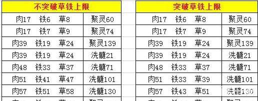 【不突破上限】就是老老实实按照聚灵/洗髓升级的需求,比如升级要10000铁,就把铁的等级升到上限超过10000,这样资源够了就升聚灵/洗髓,不突破草铁上限,胜在操作简单,没那么费心费力