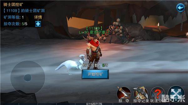 骑士团玩法,进入骑士团矿洞点击开始挖矿,每次挖矿等待时间为两小时,每天拥有5次挖矿次数。