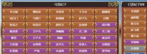 如果说自选大臣是征服党福音,自选妃子就是后宫党的天堂(根据已有妃卡解锁)。
