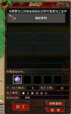 4、如果加工成功,装备的加工级别提升1级,其装备的基础属性提升10%,同时,玩家将会获得一定的加工技能熟练度;