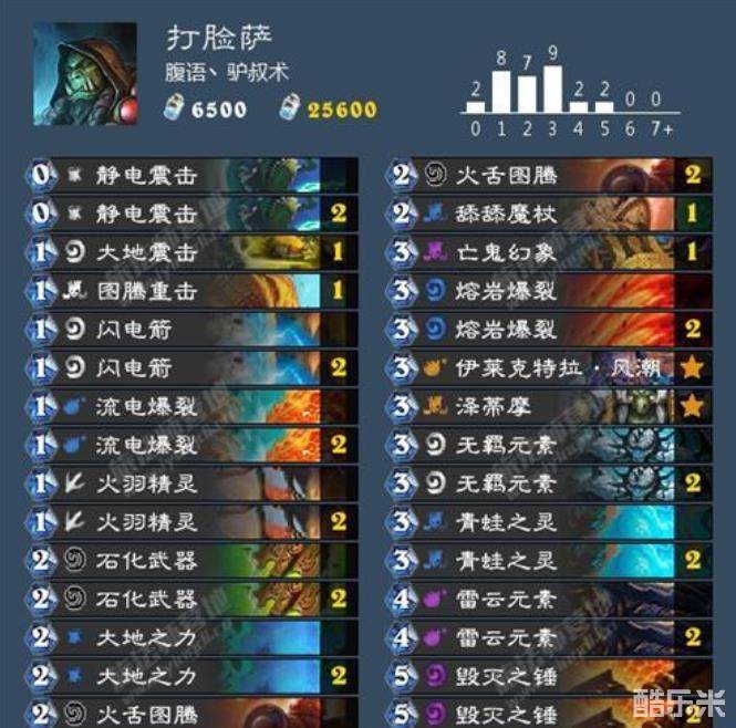 这是腹语丶驴叔术在传说分段使用的打脸萨。这套牌的节奏非常的快,图腾重击可以前期消除对手快攻的场面,也可以配合青蛙之灵继续过牌,更可以打脸补充伤害。在5费提刀的回合前,4费的雷云元素无疑是最好的选择,它身材优秀,不会过载,提刀还能出两个11,真是三倍的快乐。