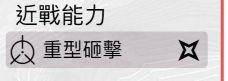 截击:将依附属性传至自身,对自身范围内敌人造成此属性的debuff(简单说就是巨像使用火焰喷射器造成火焰依附属性,截击使用雷电冲击成功目中目标造成combo,此时获得火焰属性的buff,对自身范围内的敌人造成aoe的火焰属性伤害)。