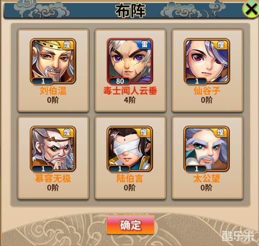 站位可以考虑1-6号位(从左到右从前到后):刘伯温、主角、仙谷子、慕容无极、陆伯言、太公望