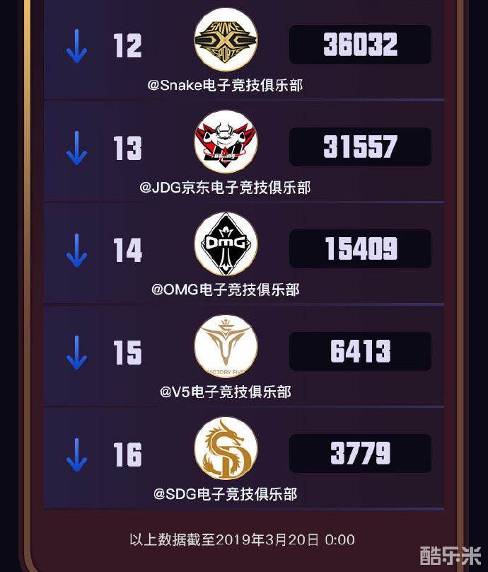 战队势力末尾的分别是两支新军V5和SDG,远古黑暗势力倒数第三也十分令人唏嘘。
