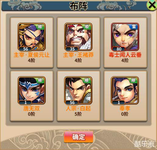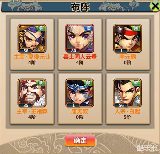 该阵容是纯输出阵容前面用稍肉的夏侯元让和王褚莽作为双屏障,支撑其余4人输出,不足之处是没有治疗,输出不稳定,但是伤害很足。俗话说的好:就是刚,不要怂!