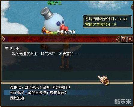领取活动道具大雪球。雪地中的怪物只能被大雪球攻击,不装备大雪球进入雪地就只能挨打了!