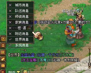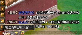 聊天窗口:聊天窗口分为上下两部分:广播频道和玩家聊天区。广播频道区显示的是使用大喇叭发出的消息,只有具备了大喇叭或者体验大喇叭才可以在这里发消息,它不可被屏蔽而且会被所在大区的所有人看见。系统的发布的各种提示信息、玩家聊天等等,都会显示在玩家聊天区。