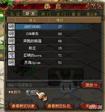 添加好友:玩家用右键点击选中想加为好朋友的人物,选择“加为好友”,就会弹出申请加为好友的对话框,输入请求内容,申请加为好友的信息就发送给对方了。还有一种方式,点击“社交”,在弹出的界面中选择“好友”页签,输入你想添加的好友昵称,点击“添加”,同样也会弹出申请加为好友的对话框来。只要对方同意了你的请求,系统就会给出感叹号提示,你们就正式加为好友了。怎么样,是不是很便捷呢?