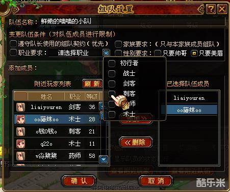 同时邀请多人组队:在“社交”的队伍页签,可以输入你想邀请组队的角色昵称,也可以点击组队按钮,查看到附近的玩家信息,同时邀请多个玩家加入你的队伍,甚至可以对想邀请组队的玩家的职业、性别等进行选择。