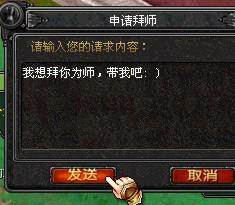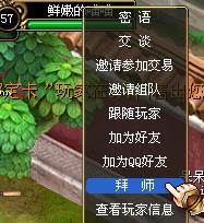 方式二:遇到你想拜师的玩家,选中他后,右击该玩家的名字,选择“拜师”,接着就会弹出申请拜师的对话框了。