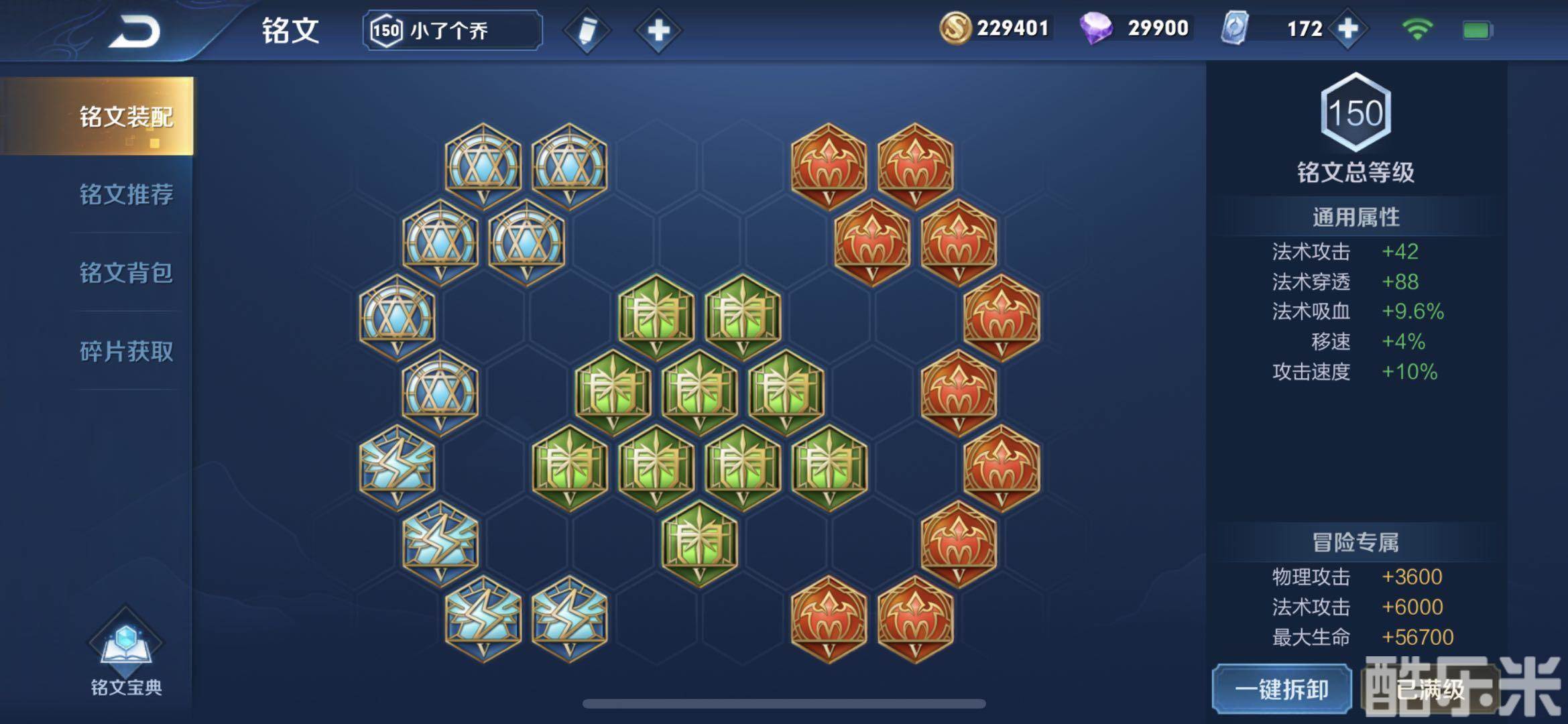 红绿部分的88穿透是基础搭配,不用多解释。蓝色铭文选择搭配6贪婪+4狩猎,因为考虑到不出吸血书会缺乏续航能力,6贪婪给的9.6%吸血恰好可以弥补这点,而且也够用了。