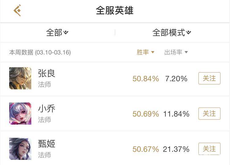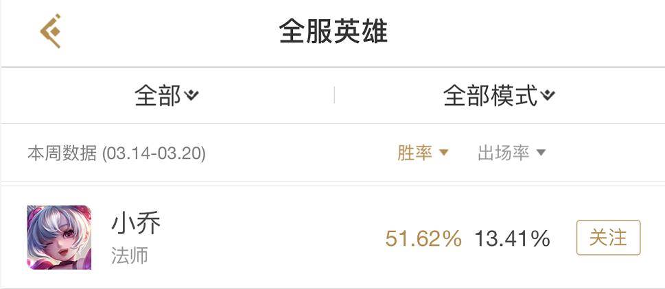 我们可以对边一下小乔调整前后的胜率数据,上图是调整的前一天阿冷在营地所截取的胜率,是50.69%。