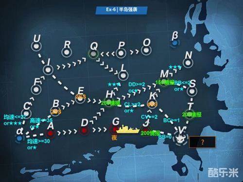 配置:4BB+CA+dd(BB大于等于2,需求低速,均速小于等于27,必要时CA换重炮)(最高航速大于35,道中1ss)
