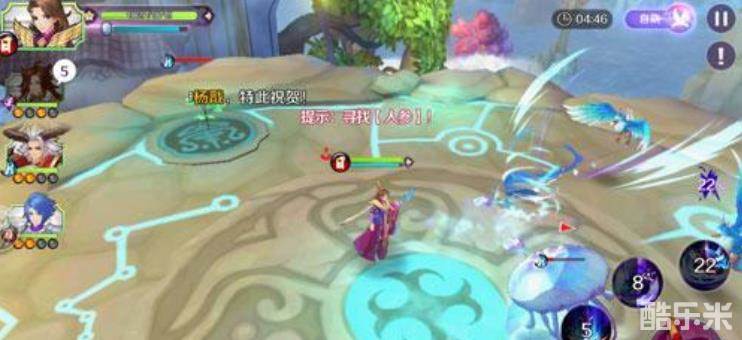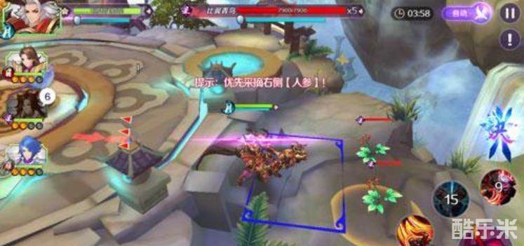 这个副本想要拿到三星的话就必须要找到四个人参,自动战斗可是不行的。第一个人参在第一个圆盘的上方,如图的位置: