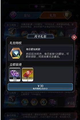 每天可以得到120个钻石,一个月加起来大概能够3600个紫色钻石,这个数量可以了,加上直接领取的300星钻和3张补给证明,确实是物有所值,值得各位平民小R第一时间入手。