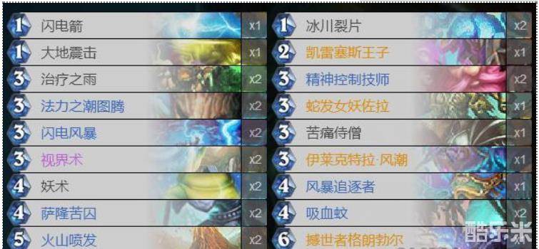 对阵奇数贼,奇数骑,治疗园这些快攻时,没有必要凑齐回血,复制,回手这些无限的组件,只要当前回合能够使用冰冻控场或130拉怪,就可以直接扔下,快攻一般是解决不了6-6的沙德沃克的,次回合都可再次回手。下面为大家分析一下新卡以及单卡替换。