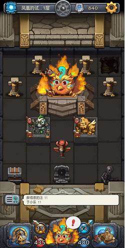 难度有点大,boss凤凰本身太肉,特性减伤加双抗还能复活一次,需要活用画面中间的“火焰图腾”(图腾有CD需要算好回合)。